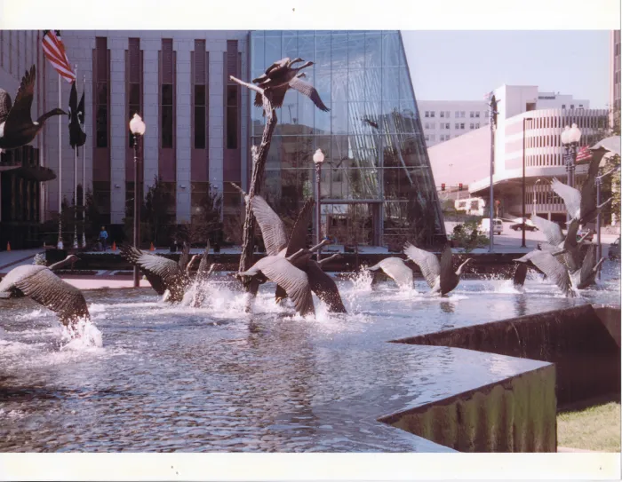 In 2001, I was working for a fountain equipment manufacturer as a designer. My job function was to choose product from our catalog that would achieve the look that the specifier desired. A project was assigned to me that involved sculptures and an animated zero depth fountain for a bank in Omaha, Nebraska. The challenges for the animated feature was all in a day’s work. The sculpture challenges were just the opposite from the animated fountain. How to create the splash that a goose makes taking flight. The story line was, that a flock of geese would be taking off from a pond after being frightened by an approaching buffalo. I had no idea how remarkable of a journey those birds and that buffalo would lead me on. The sculpture artist commissioned for this project was Kent Ullberg. At the time, Kent was regarded as one of the best sculptors-artist of wild creatures. That reputation has been upheld throughout his career. Examples of his artistic and sculpting legacy can be seen on his website, kentullberg.net.